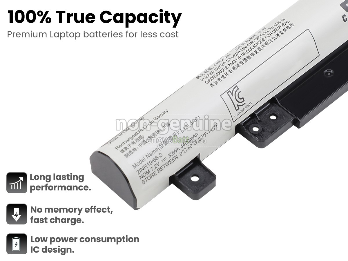 Our Lenovo FLEX 2 14 59422146 battery is 100% real capacity, rejecting false identification or using inferior material. We select high-quality A+ batteries, so the battery can be recharged and discharged 800+ times that used for more than 3 years.