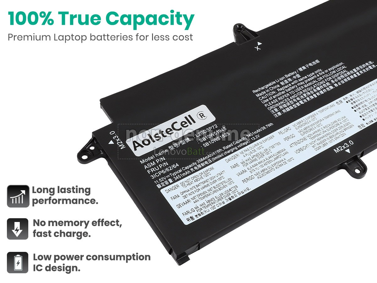 Our Lenovo ThinkPad X13 GEN 2 (INTEL)-20WK00J2AU battery is 100% real capacity, rejecting false identification or using inferior material. We select high-quality A+ batteries, so the battery can be recharged and discharged 800+ times that used for more than 3 years.